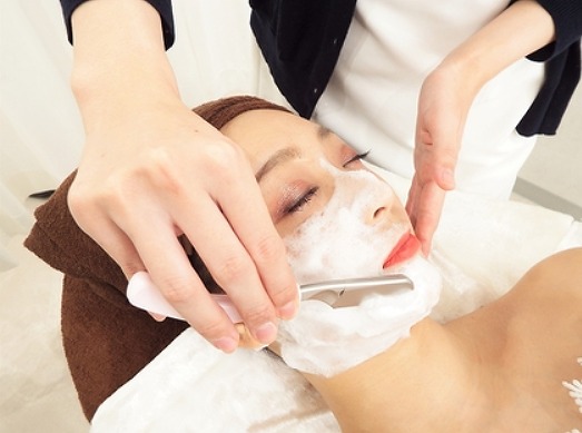 シェービングをプラスしたフェイシャルメニューです。古い老化角質をうぶ毛と一緒に優しく取り除き、くすみ知らずの明るい肌に♪